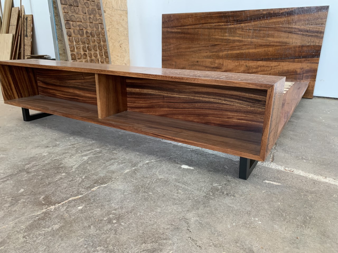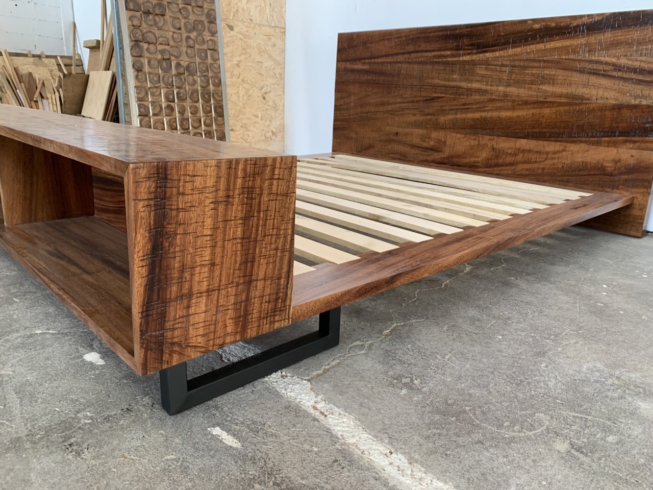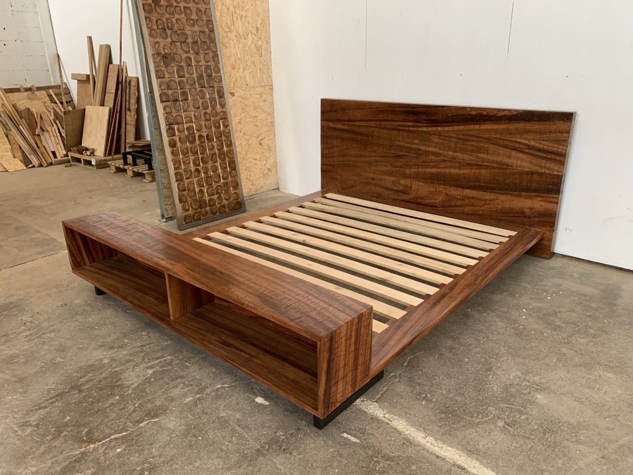 Add a rugged yet soothing touch to your bedroom with the Monteverde bed, featuring a lightly sanded rough-sawn plank headboard paired with meticulously built and sturdy frame, and a large finished footboard that can function as a decorative space or for storage. This piece can be built from any of the available wood species at the studio, and in King or Queen size. Pricing starting at $1,990.